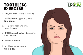 Methods to eliminate face fat repeat 5 to 10 times at a stretch and two times a day for best results.